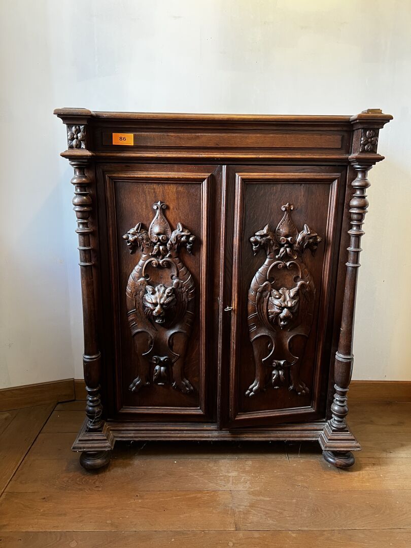 Buffet bas en chêne ouvrant par deux vantaux moulurés
