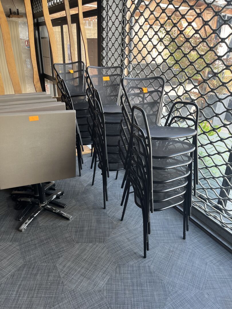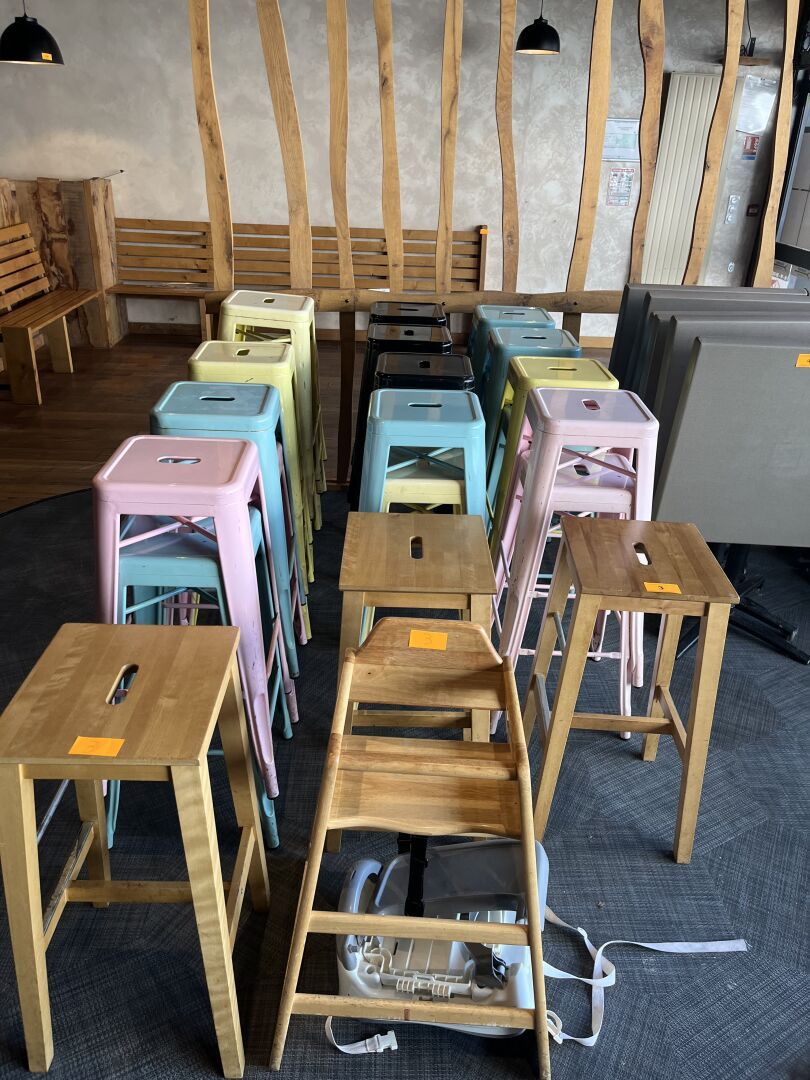 Important stock de vins, Matériel de sono, 32 Tables, 66 Chaises, 29 Tabourets, Mobilier de terrasse, 2 Vitrines réfrigérées et 2 Armoires réfrigérées…