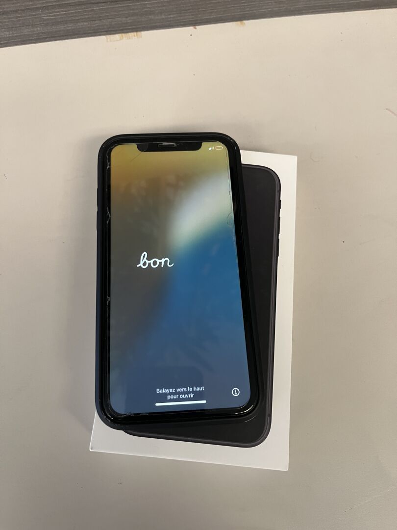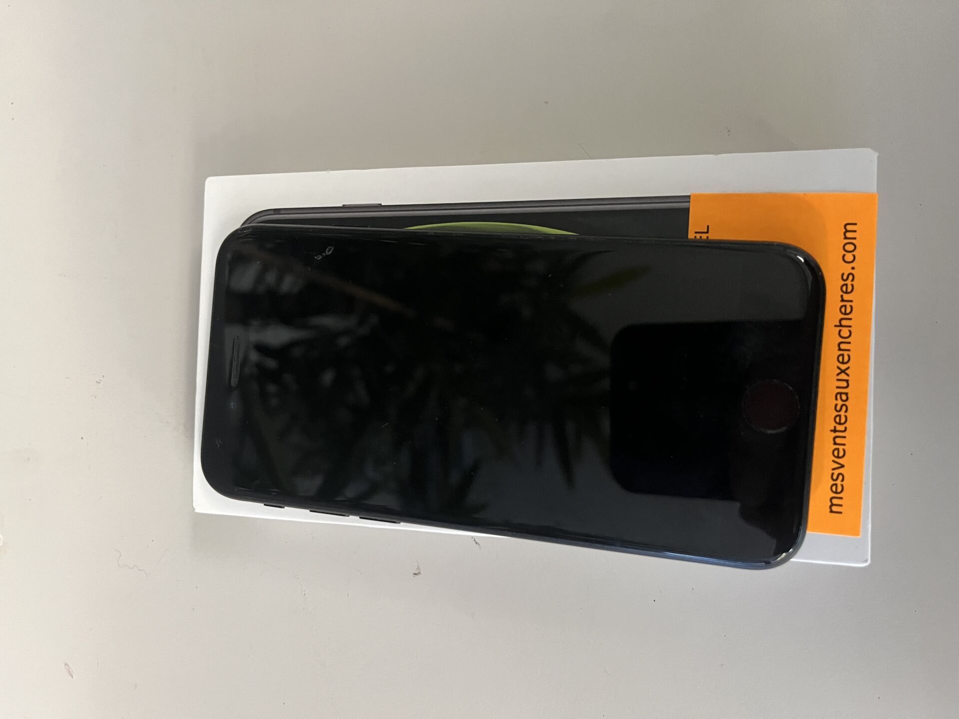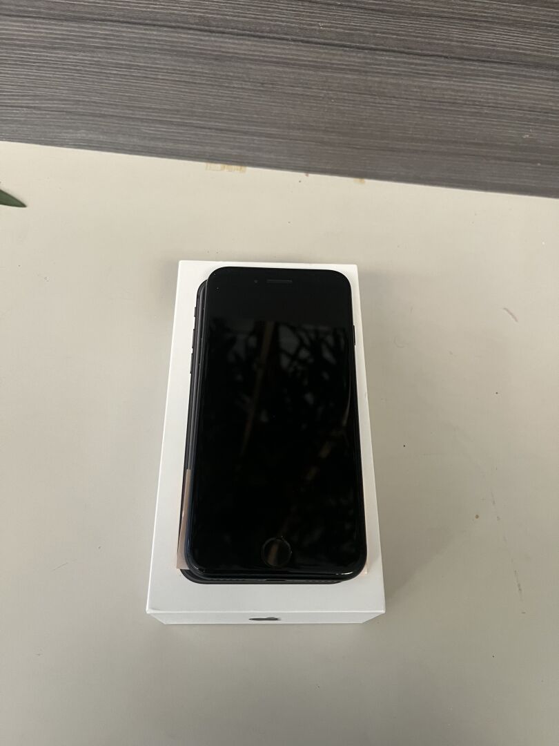 IPhone SE noir, sans alimentation, dans sa boite