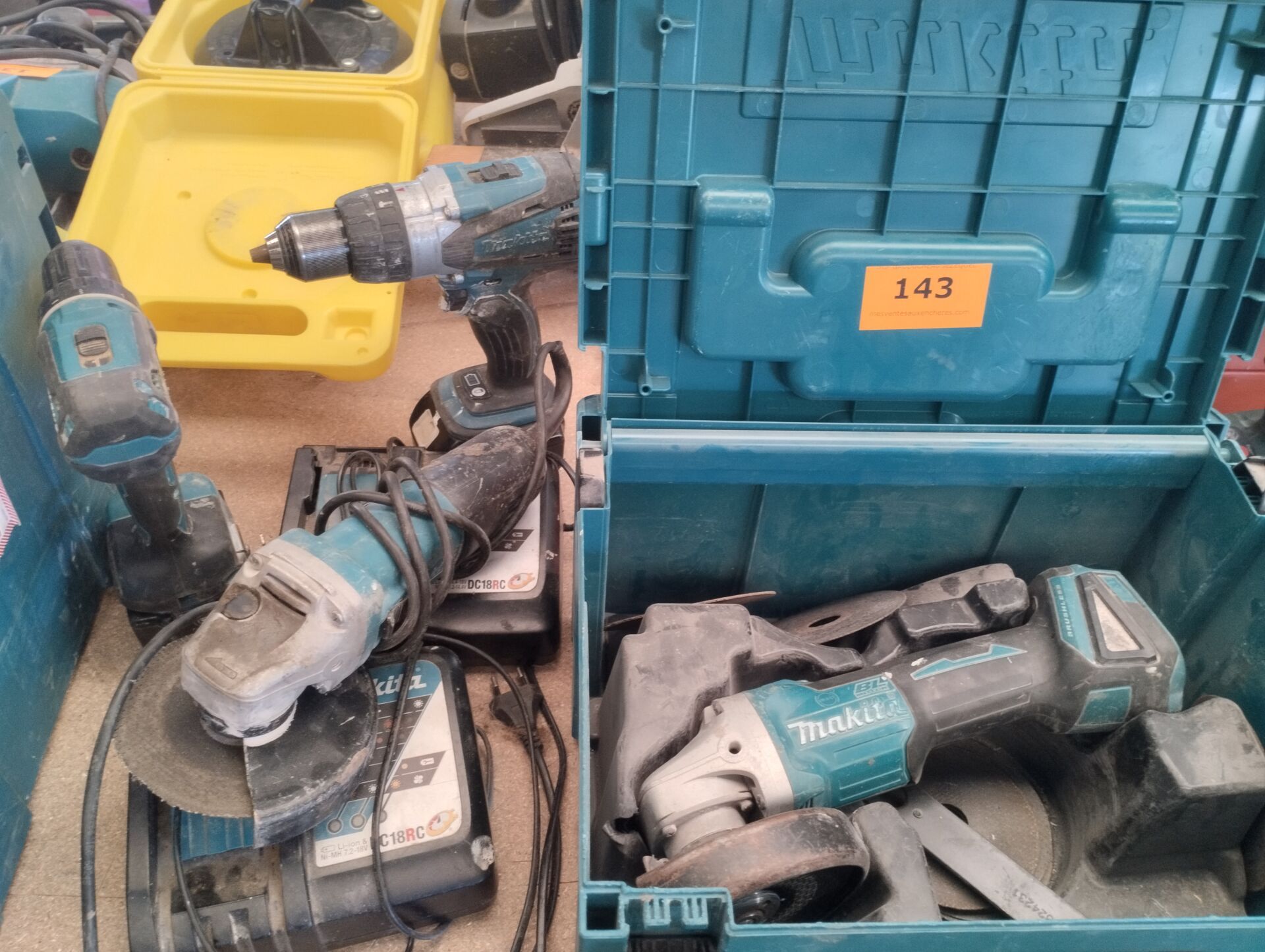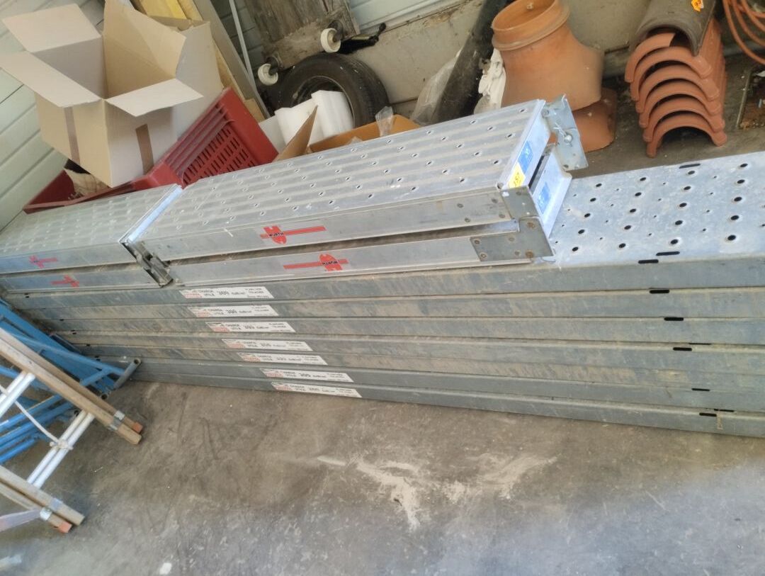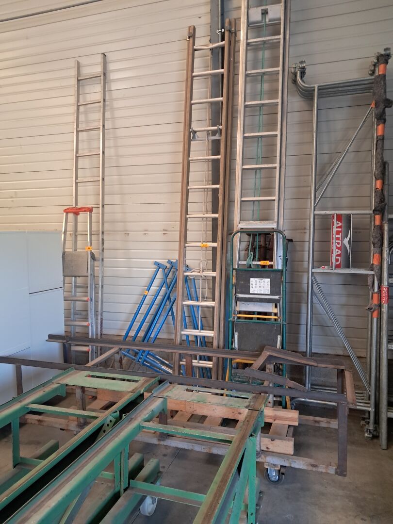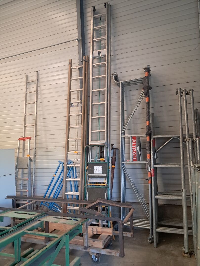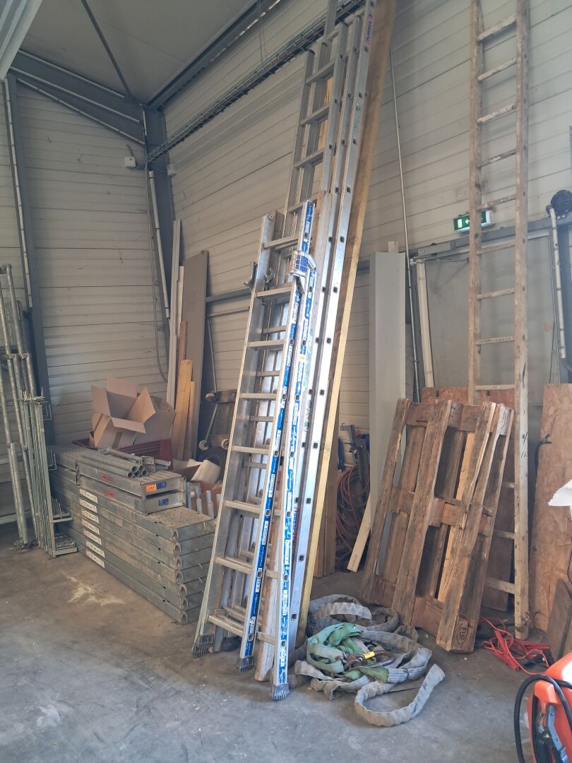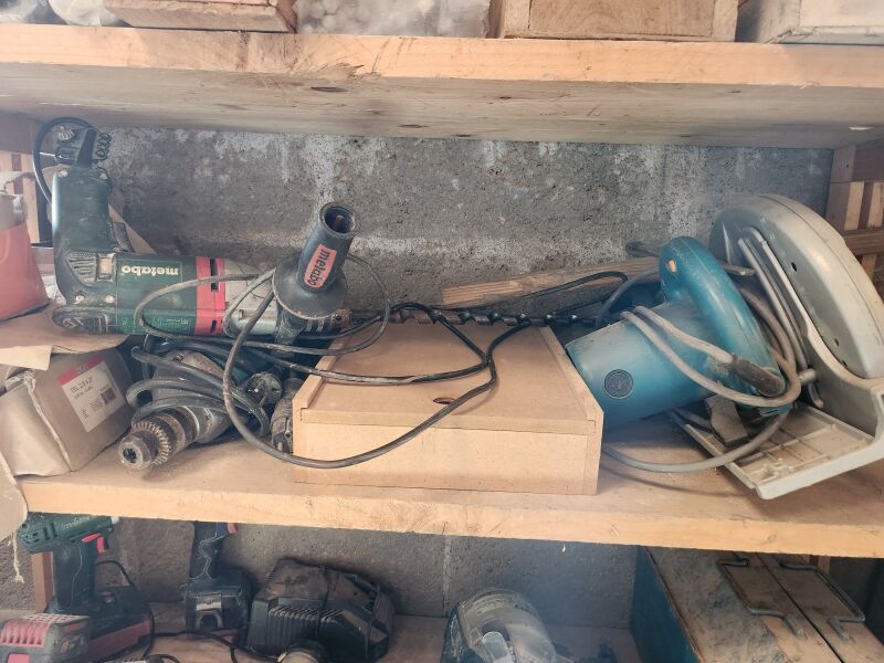 Outillage (MAKITA, BOSCH, HITACHI, DEWALT, METABO…), 3 Robots tondeuses HUSQVARNA*, Échafaudage…